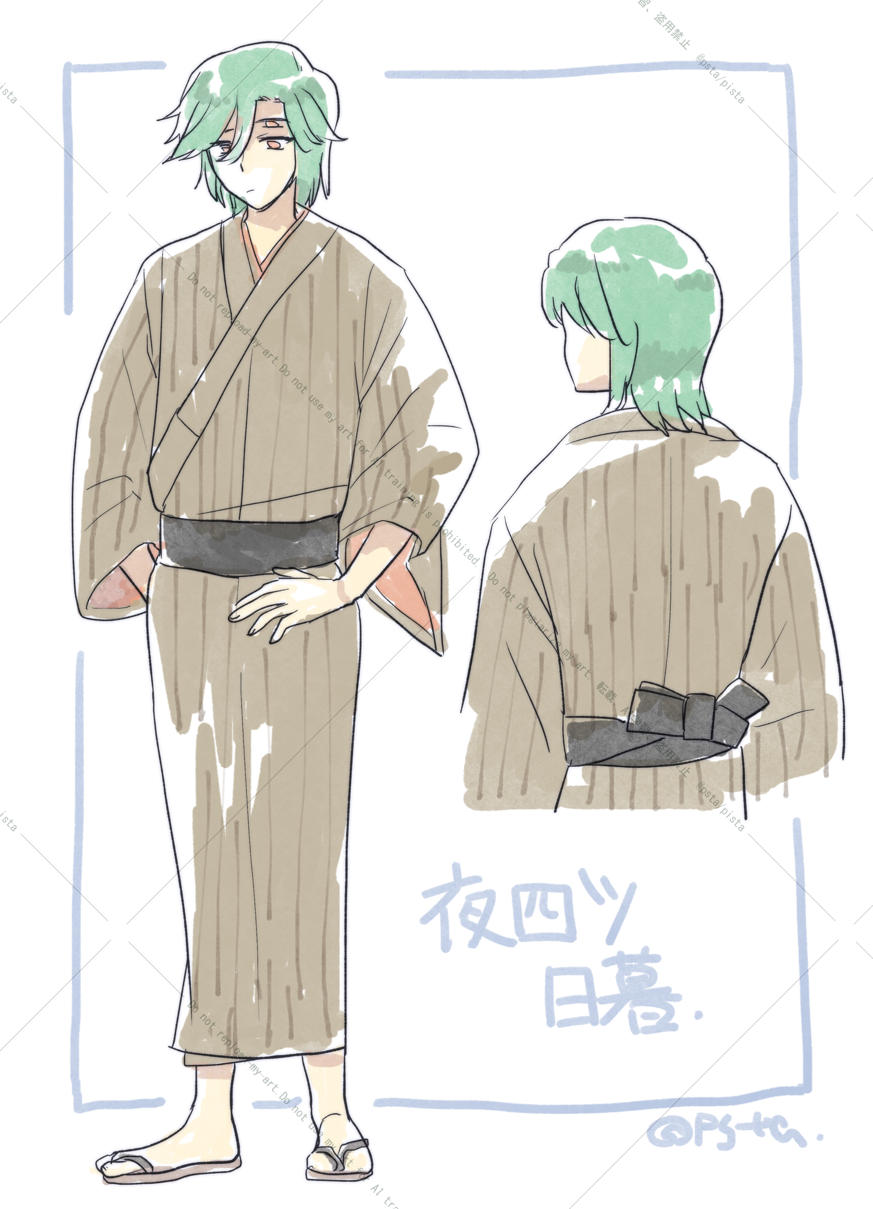 original 複数枚あり・人外魔境浅草という企画で作っていた自キャラ夜四ツ 日暮(よるよつ ひぐれ)江戸時代中期くらに生まれて、木戸門あたりに発生した妖怪。別名「木戸門日暮(きどもんひぐれ)時間と空間の境界、黄昏時の妖怪、ものまね妖怪
